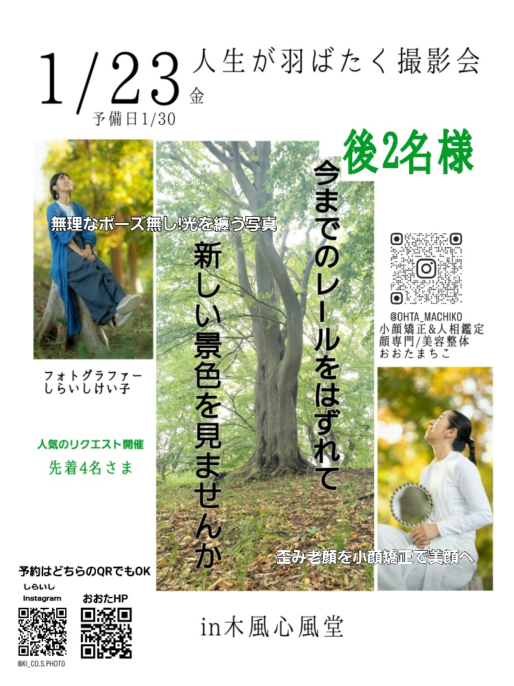 □予約…LINEに[1/21参加と記入.名前]を送信下さい。後に顔写真3枚[正面/右横/左横]LINEに送信ください(HP内のLINEボタンより)